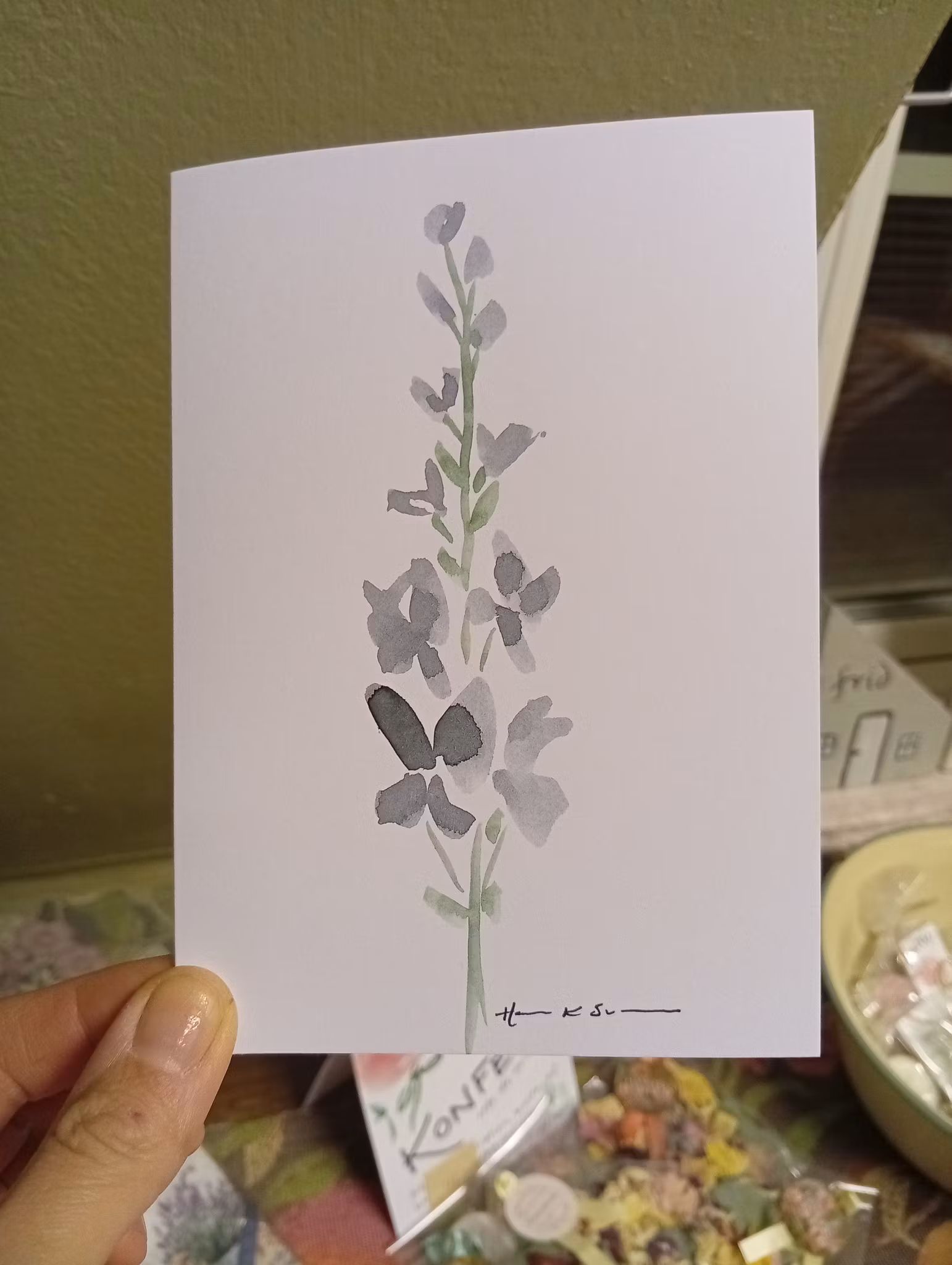 Handmålat kort med kuvert.